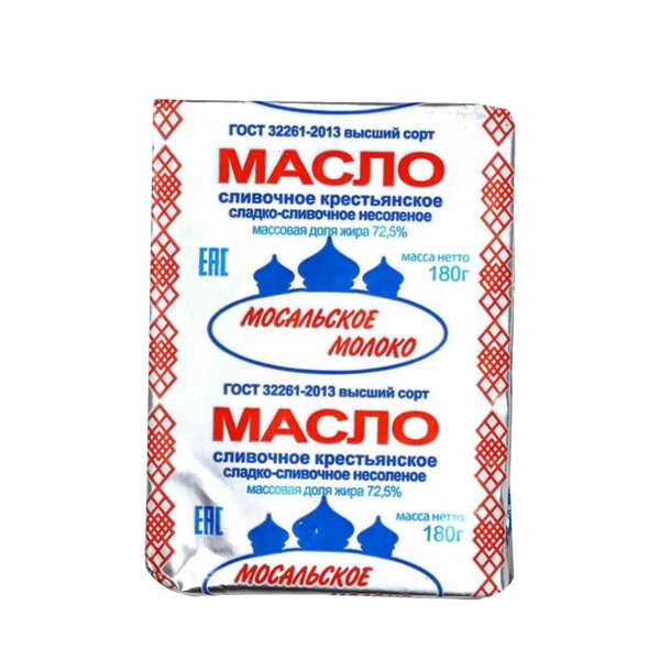 Масло сливочное 72,5% 180г ТМ Мосальское молоко