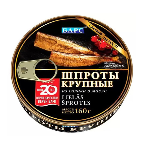 Шпроты в масле Барс крупные из салаки 160г
